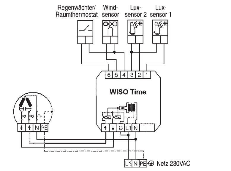 Multifunktionseingang für Thermostat oder Regenwächter.