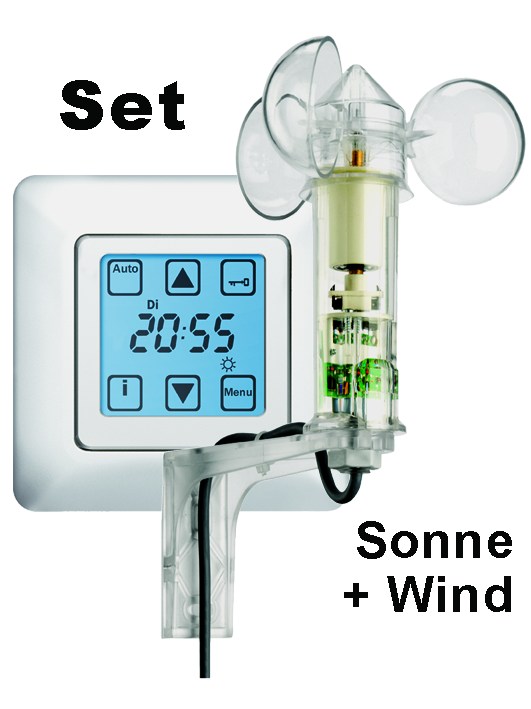 Statusanzeige + Sonne-/Wind-Überwachung über Display einstellbare Funktionen für Sonne, Wind, Motorlaufzeit.