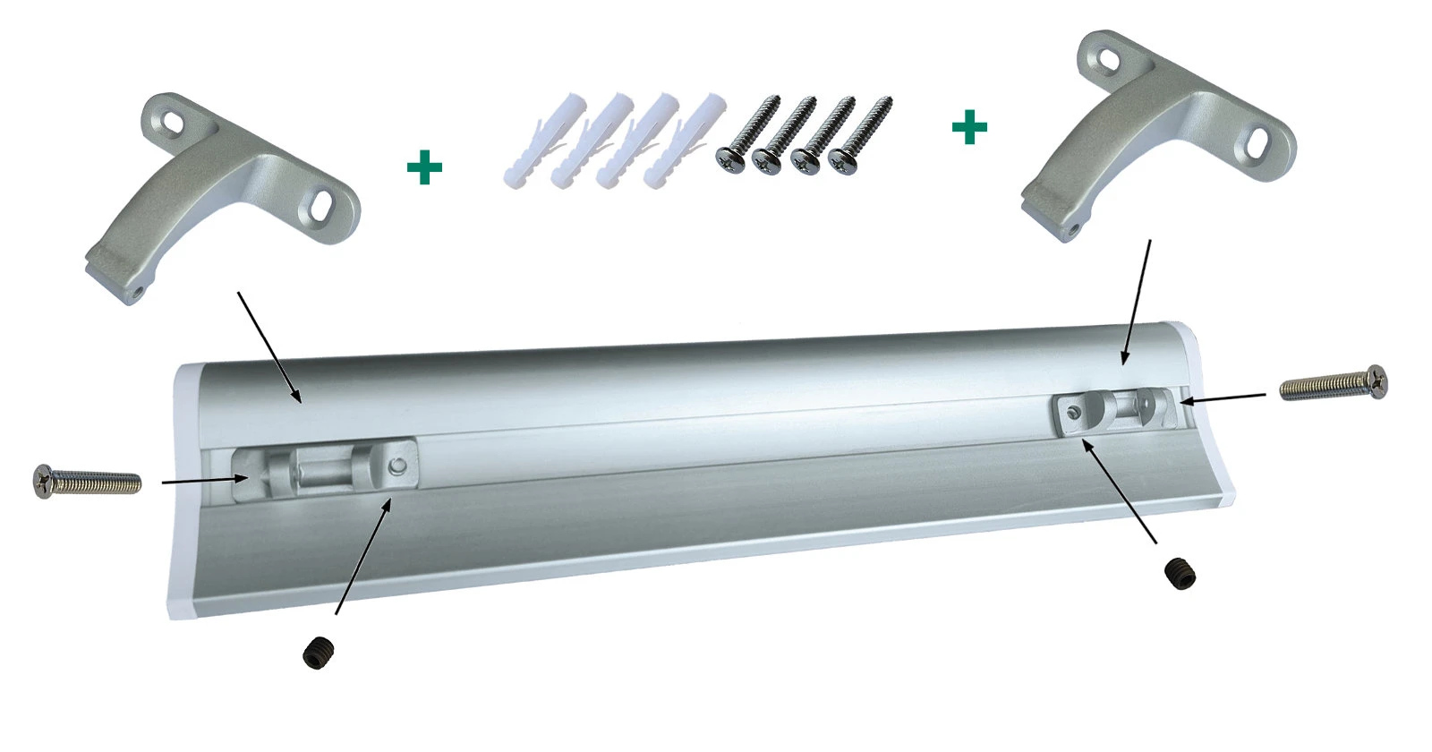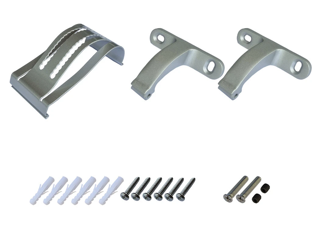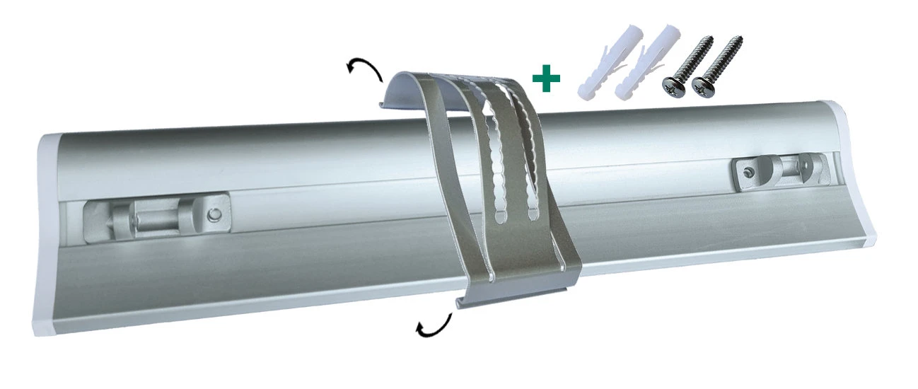Die Montage kann entweder über Klipp-Halter bzw. Klammer-Halter oder mit zwei Befestigungsbügeln erfolgen, beides im Lieferumfang enthalten.